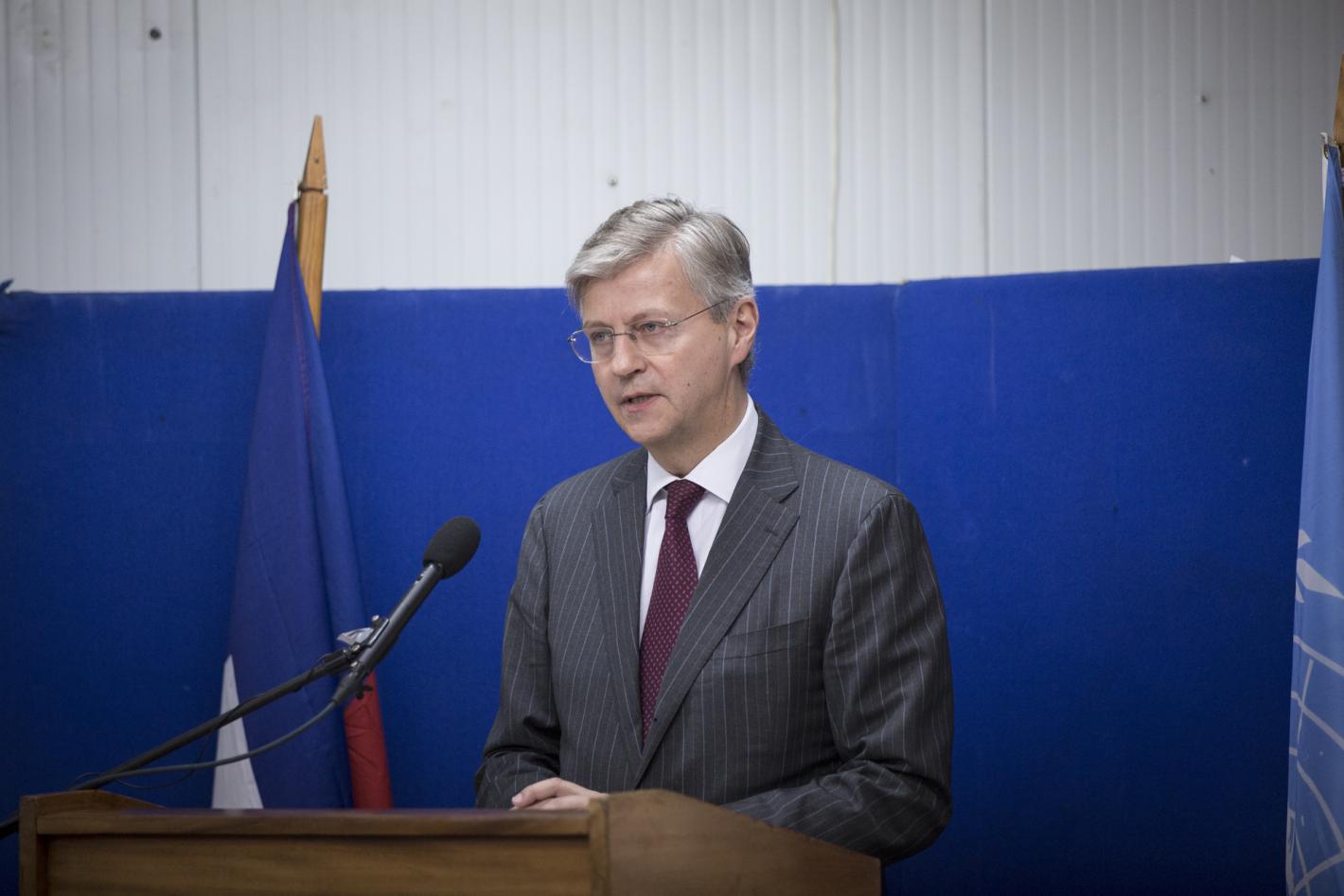15 mars 2018MINUJUSTHDéclaration à la presse du Secrétaire général adjoint aux opérations de maintien de la paix, Jean-Pierre Lacroix, à l'issue de sa visite en Haiti