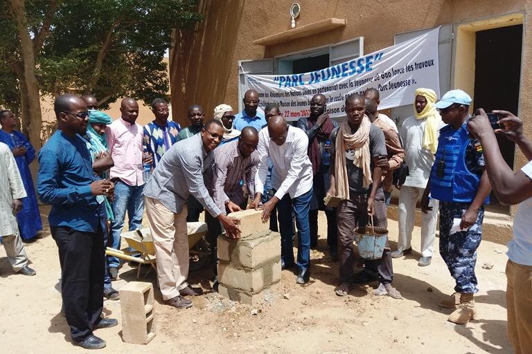 30 mars 2017MINUSMARéhabilitation de la maison des jeunes de Gao : le Programme des VNU pose la première pierre du chantier