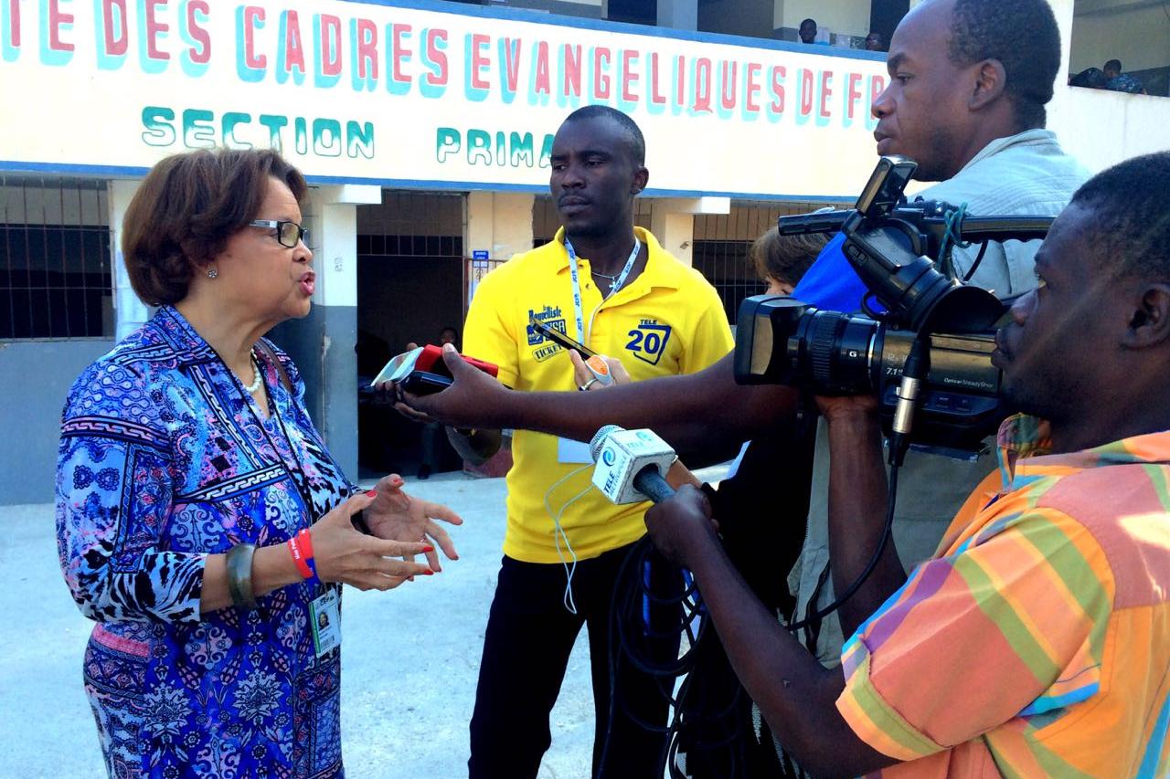 29 janvier 2017MINUSTAHInterview de Mme Sandra Honoré, Représentante spéciale du Secrétaire général de l’ONU en Haïti, avec des médias incluant MINUSTAH FM, lors de sa visite de centres de vote