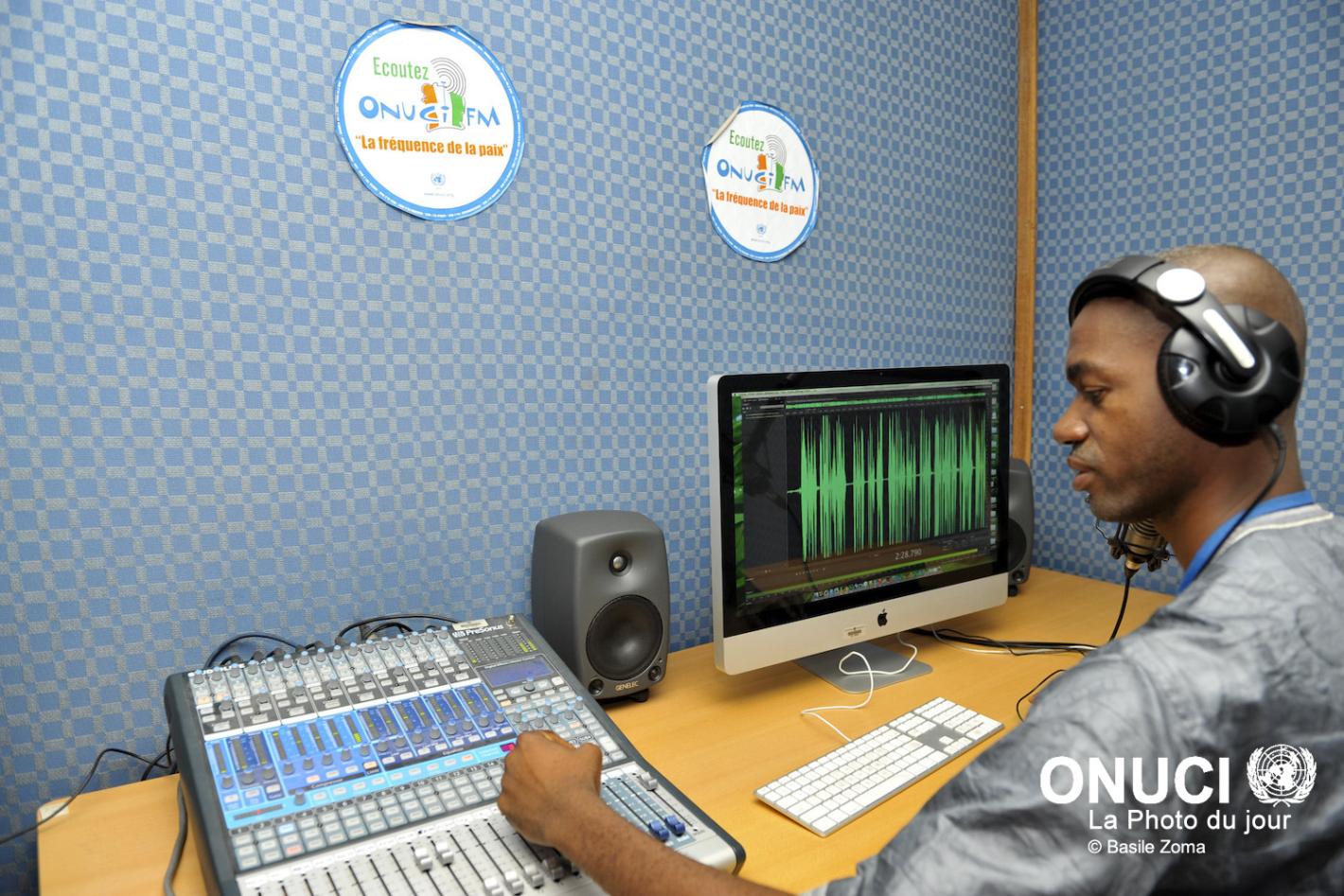 19 juillet 2016ONUCI Montage d’éléments sonores dans les studios d’ONUCI FM, la radio de l’Opération des Nations Unies en Côte d’Ivoire (Abidjan, décembre 2012)