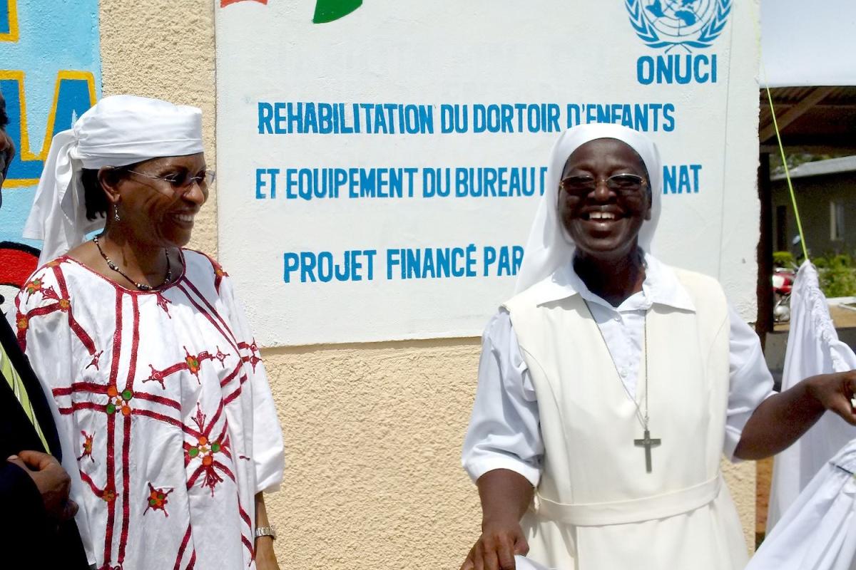 25 mai 2016ONUCIProjet à impact rapide de l’ONUCI : la Directrice de l’orphelinat ‘’ La Casa Del Sol’’ exhibe quelques pas de danse pour remercier l’ONUCI d’avoir rénové l’établissement (Tabou, mars 2016)