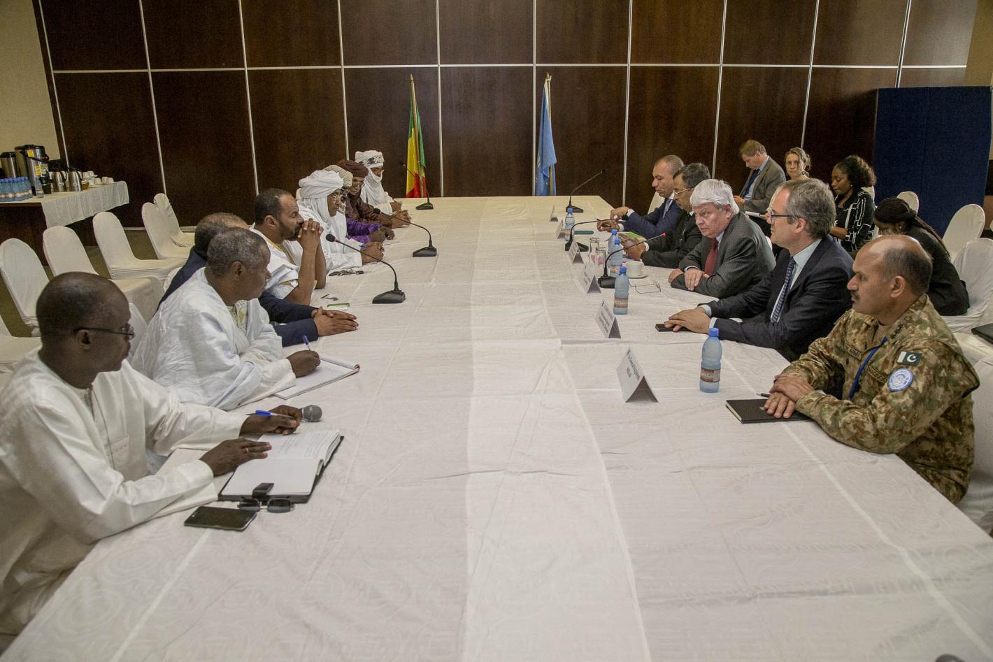 30 avril 2016MINUSMALe Secrétaire général adjoint aux opérations de maintien de la paix, M. Hervé Ladsous avec les représentants des mouvements signataires de l’Accord pour la Paix et la Réconciliation au Mali