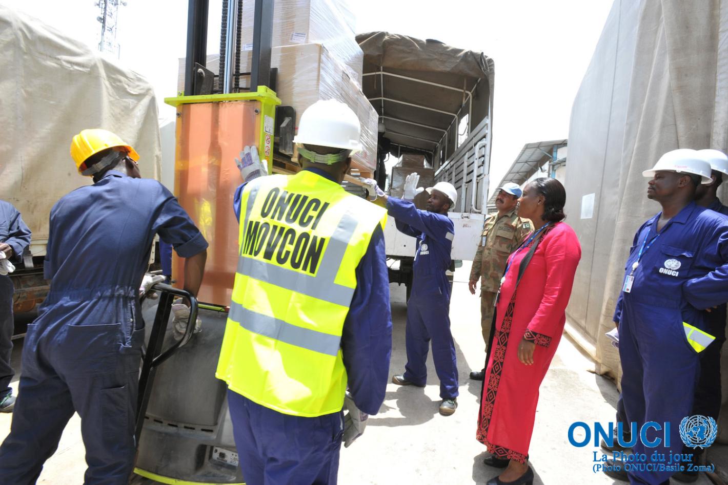 12 avril 2016ONUCIL’ONUCI, c’est aussi toute une logistique : le service cargo de la section MOVCON (Contrôle des mouvements) à pied d’œuvre (Abidjan, mai 2012)