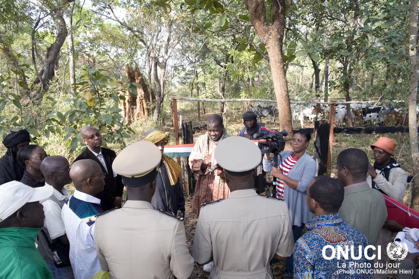13 avril 2016ONUCIDes parcs de nuit pour le bétail ont été mis à la disposition des éleveurs de Sokourala, grâce à un financement conjoint ONUCI-PNUD, pour résoudre un conflit intercommunautaire avec les agriculteurs (Sokourala, préfecture de Touba, avril 2012).