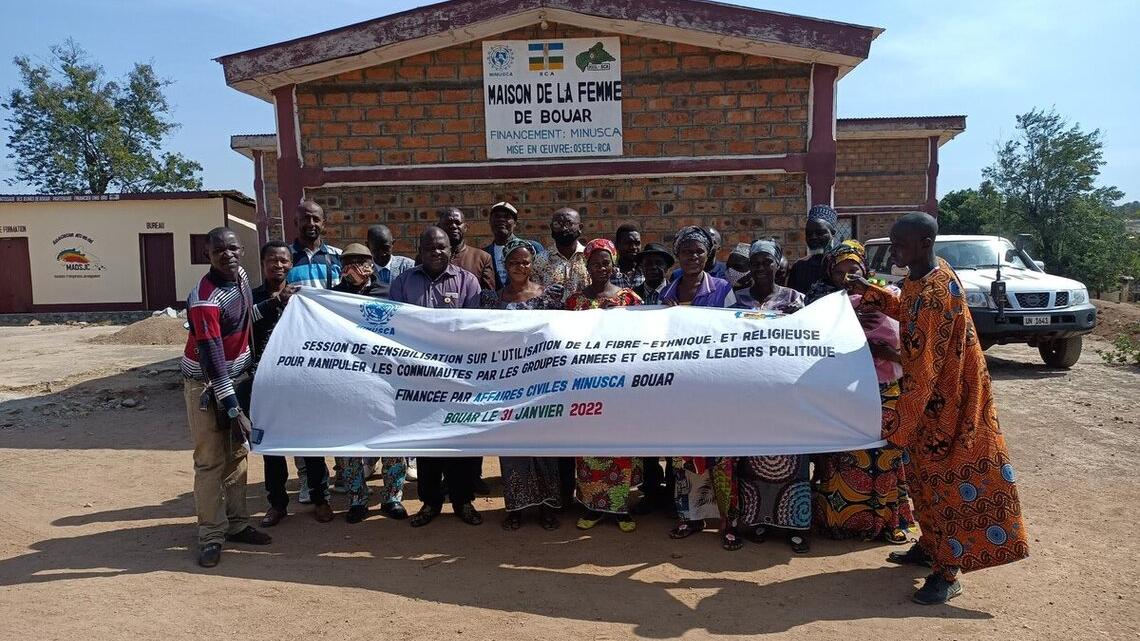 Dans le cadre de son mandat pour rétablissement de la paix en République centrafricaine, la MINUSCA, par le biais de sa Section des affaires civiles, a organisé le 31 janvier 2022 à Bouar, un atelier de réflexion et d’échange sur la manipulation de fibre religieuse et ethnique par des groupes armés, pour attiser les conflits entre communautés.