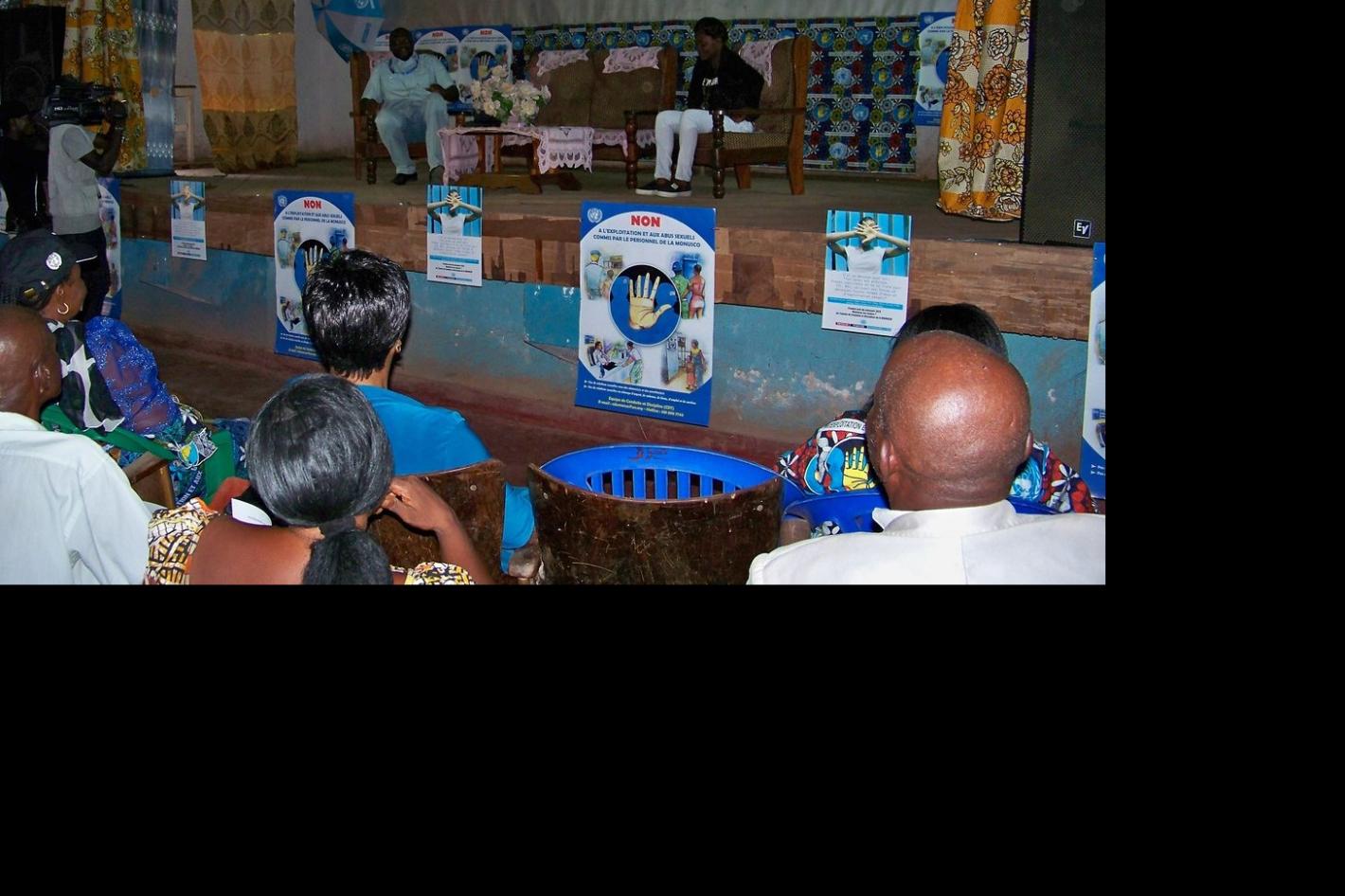 La MONUSCO sensibilise les populations aux normes de conduite du personnel de l’ONU. Photo MONUSCO/Amuri Aleka Kalemie, 2 octobre 2017 - « Certainement tu auras un emploi à la MONUSCO; je vais te donner le poste de Child…