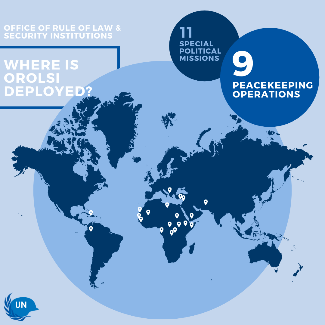 Управление по делам органов обеспечения законности и безопасности (УДООЗБ), созданное при Департаменте миротворческих операций (ДМО) в 2007 году, прилагает усилия по развертыванию миротворческих сил, которые в качестве миростроителей на раннем этапе оказывают пережившим конфликт странам помощь в восстановлении работы органов обеспечения законности и безопасности, необходимых для установления и поддержания мира. Подробнее