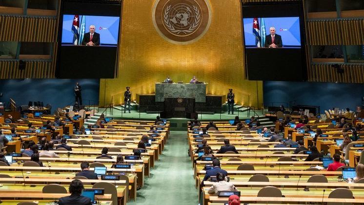 Значительную часть своего выступления в ходе общеполитической дискуссии 76-й сессии Генеральной Ассамблеи ООН кубинский президент Мигель Диас-Канель Бермудес посвятил критике в адрес США. Он обвинил Вашингтон в «преступном усилении блокады Кубы» на фоне пандемии COVID-19 и в попытках уничтожить завоевания Кубинской революции.
