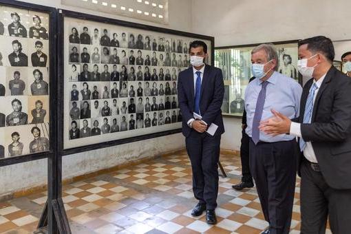 Генеральный секретарь ООН в воскресенье посетил Музей геноцида Туол Сленг в столице Камбоджи Пномпене, где отдал дань памяти жертвам террора красных кхмеров.