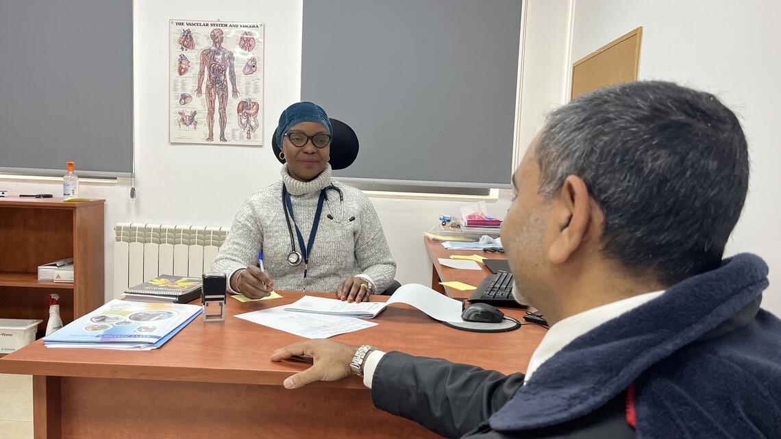 “我已经和家人分开将近20年了,但通过加入停战监督组织的特派团,我得以让儿子回到我的身边。现在他还在青春期,正是我最应该陪伴他的时候。科特迪瓦的学校一放假,儿子就能来和我团聚。有时,独自在没有家人的地方工作会令人感到孤独和伤感。但是,我以前工作过的其他特派团太过危险,无法带上亲人,例如科特迪瓦、南苏丹、利比里亚和海地。和儿子团聚,我感觉好多了,远离家人的滋味很不好受。不过,其实我早就知道远离家人是必然的,因为我从小就一直想成为一名医生,而且想成为一名人道主义领域的医生。起初,我在公立和私立医院工作,后来得到机会加入了联合国,尽管是我在困难的局势中加入的。那是2004年,我的祖国科特迪瓦在选举后发生了暴力事件,随后演变为内战。科特迪瓦陷入分裂状态之后,联合国成立了一个特派团来控制隔离线。”